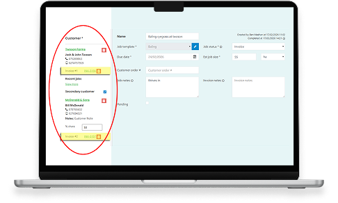 JobFlow makes it easy to split an invoice between multiple payers. Perfect for farms with two billing identities — such as a landlord and sharemilker — or multi-partner operations. You can divide costs by percentage or quantity and generate clean, accurate invoices for each party. It’s professional, transparent billing without the back-and-forth of double entry.